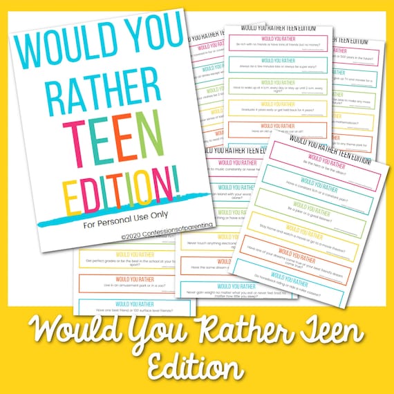 Helpful questions to break the ice and get teens talking, laughing and engaging in conversation. Would you rather questions are so much fun! Playing would you rather questions is a great way to kick off a remote meeting. Your classic would you rather? questions are on rrrather. Last updated on may 6th, 2021 at 04:01 pm. Check the 90 best & hardest would you rather questions for teens! Would you rather be famous for embarrassing yourself on tiktok or be famous because people like to make fun of you without you knowing? Would you rather entertainment questions. We've rounded up the 250 best would you rather questions that run the gamut from serious to silly. Because if you're looking for questions. The perfect list of carefully chosen would you rather questions for you. How to play would you rather for teens. Would you rather questions are a great way of quizzing one another, either for fun or as a conversation starter, and it's a favorite for teenagers.